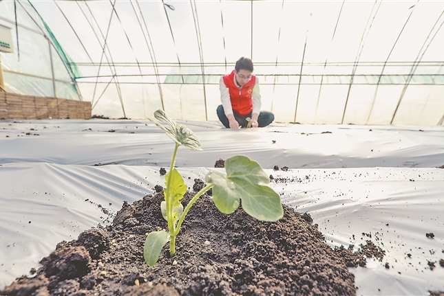 友誼農(nóng)場水稻大棚種起“百斤”瓜
