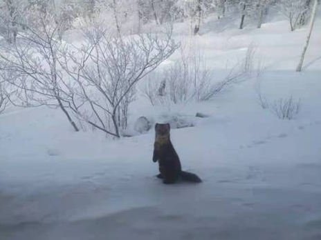 亞雪公路現(xiàn)紫貂覓食 萌態(tài)百出 機警可愛
