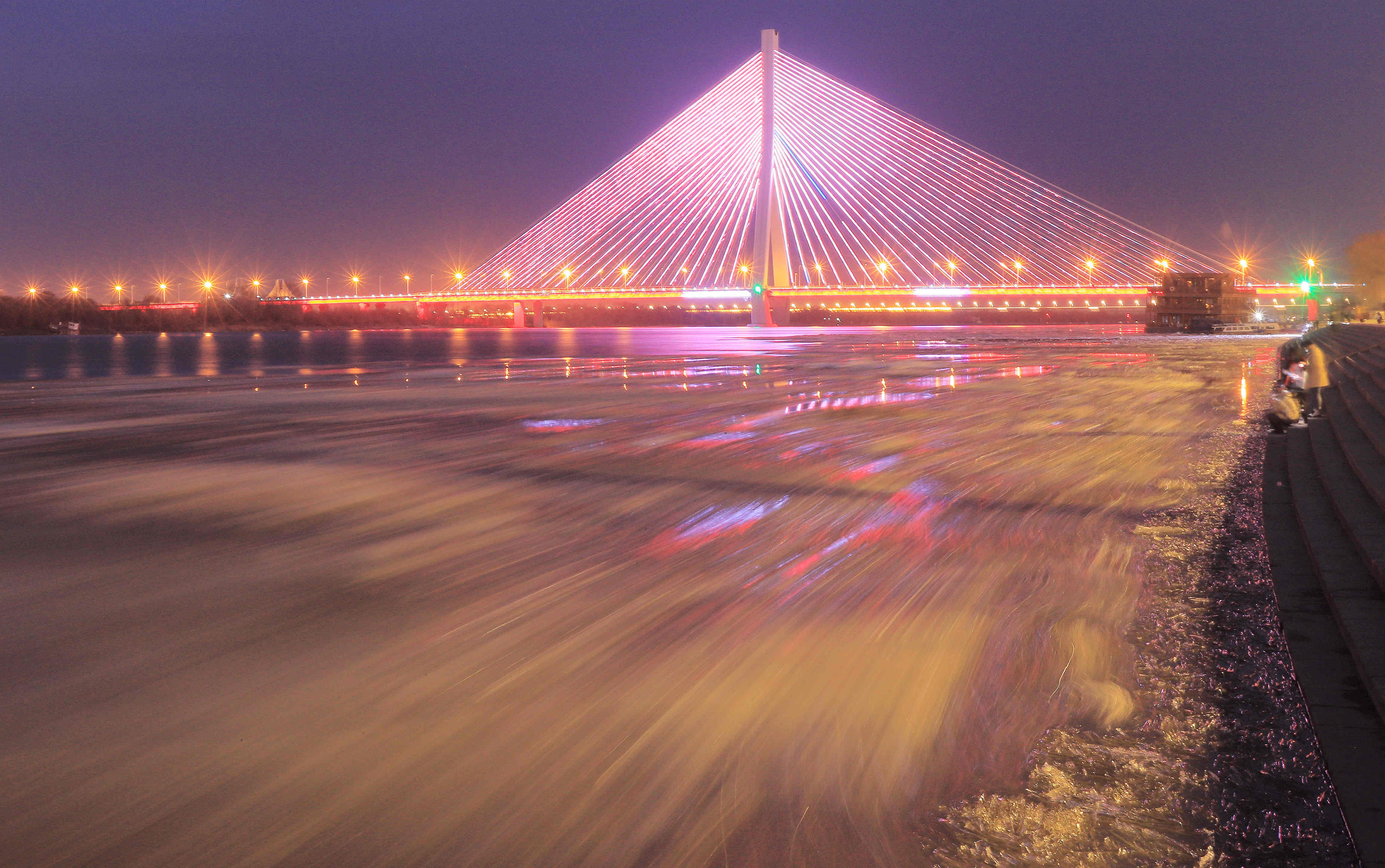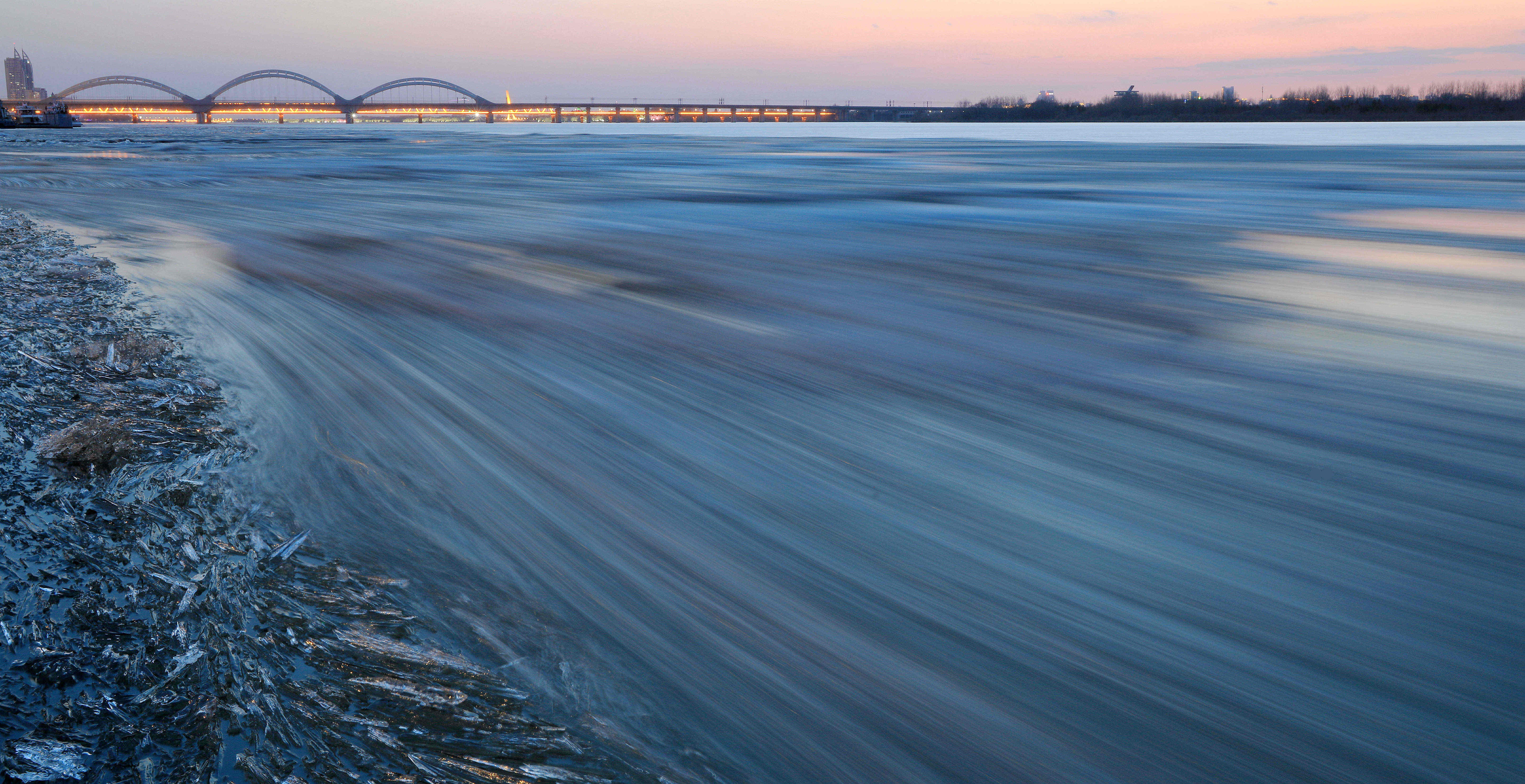 龍頭新聞訊(記者張澍)近日,松花江哈爾濱段開始跑冰排,揭開冰城春天的帷幕。跑冰排時,水下的沉冰被擠上岸,夕陽下,形態(tài)萬千的冰刺、冰凌如水晶般晶瑩剔透,露出凝聚一冬的美。當(dāng)大大小小的冰排,從上游流向松浦大橋,在江中劃出道道曲線,氣勢勃發(fā)隨江水滾滾流淌。