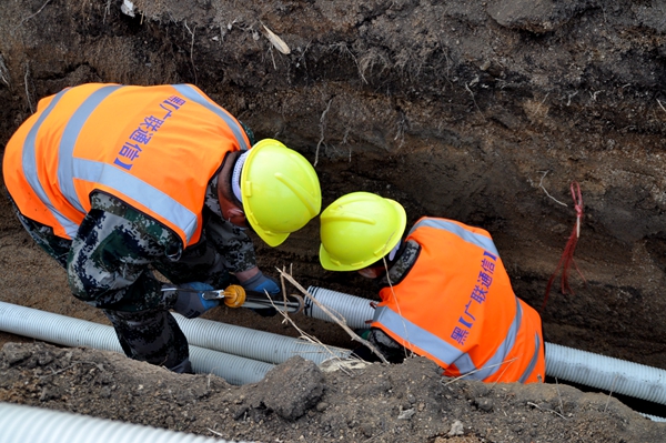 鶴崗市智能化城鄉(xiāng)通信微管廊項目施工現(xiàn)場“五·一”節(jié)熱火朝天