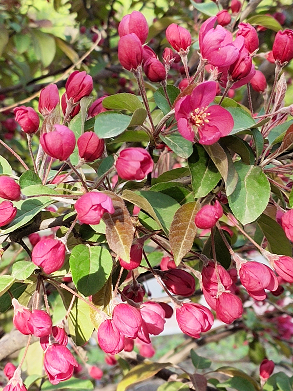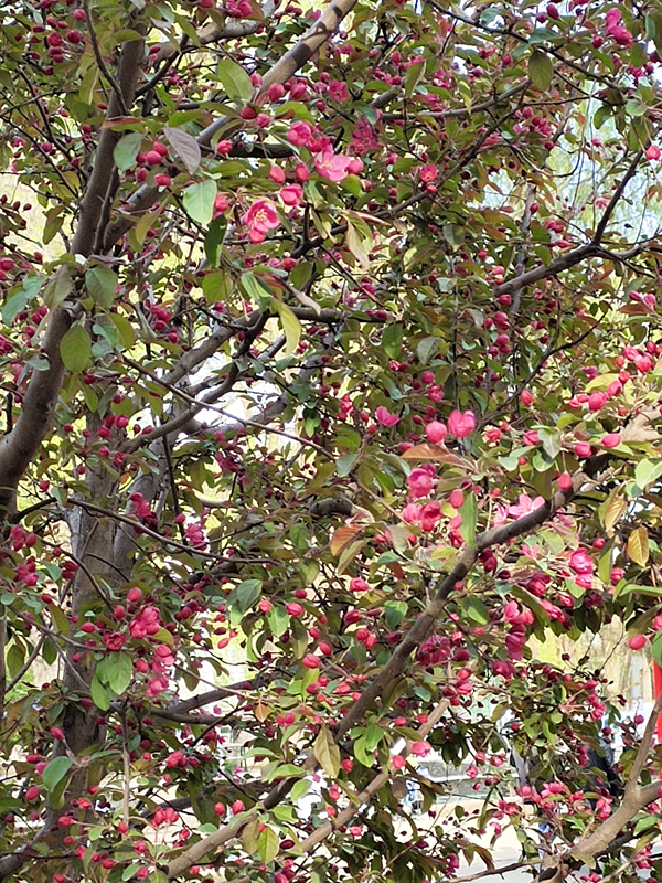 我省地處高海拔地區(qū),冬季寒冷,海棠能生長(zhǎng)開(kāi)花較為罕見(jiàn)。(祝東)