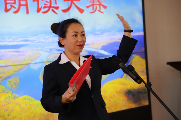 阿木爾林業(yè)局科級干部胡玉鳳在主持朗讀比賽