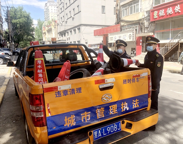 哈市南崗區(qū)綜合行政執(zhí)法局開展違規(guī)擋車樁專項(xiàng)清理行動