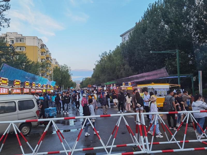 龍頭新聞?dòng)崳?span style="color: rgb(34, 34, 34); text-align: justify; text-indent: 51.84px;">記者 張同)20日下午,哈爾濱下了一場(chǎng)小雨。17時(shí)許,雨剛停,家住哈西的李女士便乘上地鐵,來(lái)到老太平區(qū)的民強(qiáng)大街?!鞍胄r(shí)橫穿城市東西,只為品嘗一下這里的小吃?!崩钆康耐槎噙_(dá)7人,都是奔著“新網(wǎng)紅打卡地”來(lái)的。