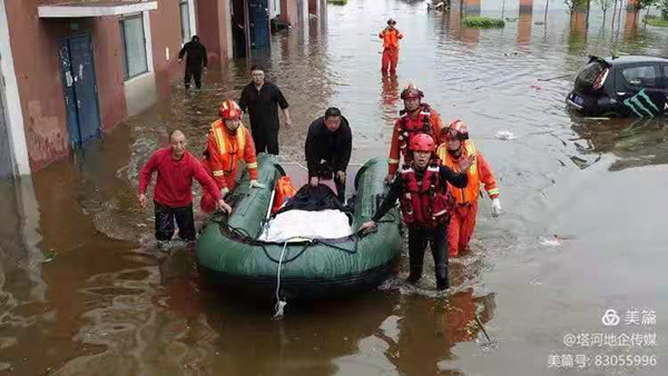同心共濟,勇當“沖鋒舟”。災情發(fā)生后,地企廣大干部職工積極響應。他們身先士卒、率先垂范,全力以赴搶險救災。組織由1000余名地企干部組成的102支防汛應急行動小組,走巷入戶,將縣域內受災住戶全部轉移安置緊急避難點。黨政干部職工用雙手雙腳為群眾開辟出一條條“生命通道”。在廣大干部職工的艱辛努力下,被困的居民得以營救并成功轉移。他們用實際行動踐行了“不忘初心、牢記使命”的宗旨,彰顯了地企一心為民的責任與擔當。