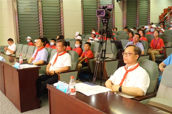 開營(yíng)儀式由黑龍江省科技館副館長(zhǎng)許黎輝主持。黑龍江省科技館黨委書記德曉龍致辭并宣布開營(yíng)。吉林省科技館館長(zhǎng)郝鶴宣讀夏令營(yíng)營(yíng)規(guī)并為夏令營(yíng)授營(yíng)旗。來(lái)自黑龍江省、吉林省的征文一、二等獎(jiǎng)獲獎(jiǎng)學(xué)生及其指導(dǎo)教師、科普志愿者共130余人參加了開營(yíng)儀式。來(lái)自吉林省集安市的王彤老師代表兩省指導(dǎo)教師發(fā)言,來(lái)自黑龍江省綏濱縣第二中學(xué)的陳曉彤同學(xué)代表兩省學(xué)生在開營(yíng)儀式上發(fā)言。