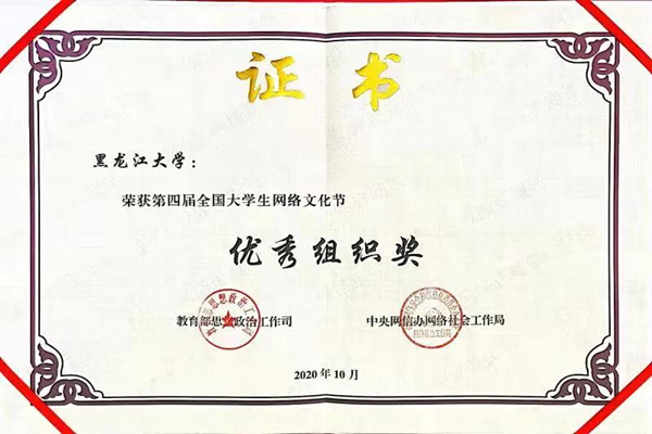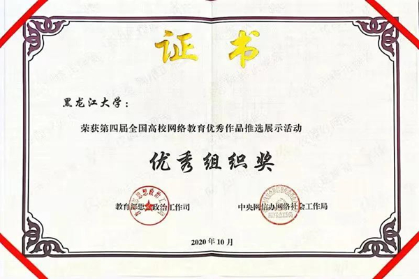 黑龍江大學(xué)一直高度重視網(wǎng)絡(luò)思政教育,曾獲全國大學(xué)生網(wǎng)絡(luò)文化節(jié)優(yōu)秀組織獎、全國大學(xué)生網(wǎng)絡(luò)文化節(jié)和全國高校網(wǎng)絡(luò)教育優(yōu)秀作品推選活動一等獎、二等獎等多項(xiàng)榮譽(yù)。作為黑龍江省高校網(wǎng)絡(luò)思政中心的依托建設(shè)高校,黑龍江大學(xué)承辦了3屆黑龍江省大學(xué)生網(wǎng)絡(luò)文化節(jié)和黑龍江省高校網(wǎng)絡(luò)教育優(yōu)秀作品推選展示活動,累計評選5000余件黑龍江省高校優(yōu)秀師生網(wǎng)絡(luò)文化作品,并推選出1882件黑龍江省優(yōu)秀高校師生作品參加全國評選。今后,黑龍江大學(xué)將繼續(xù)強(qiáng)化思想引領(lǐng),聚焦立德樹人,依托黑龍江省高校網(wǎng)絡(luò)思政中心,引領(lǐng)全省高校構(gòu)建新時代高等教育網(wǎng)絡(luò)思想政治工作體系。