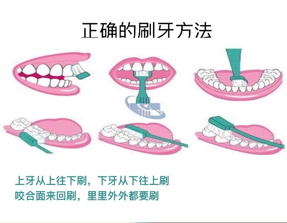 牙齒外面圓弧刷,牙齒里面顫動刷;