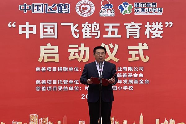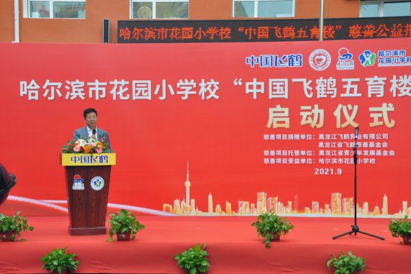 飛鶴乳業(yè)黨委書記、飛鶴慈善基金會理事長朱天龍在啟動儀式上說,在中秋國慶即將到來之際,我們滿懷喜悅的心情,在百年名校哈爾濱市花園小學(xué)校舉行“中國飛鶴五育樓”公益慈善助教項(xiàng)目啟動儀式,這是飛鶴乳業(yè)履行社會責(zé)任、情系教育事業(yè)的又一項(xiàng)助教工程。在黑龍江省貫徹落實(shí)黨中央“雙減”政策,深入推進(jìn)五育并舉,促進(jìn)學(xué)生德智體美勞全面發(fā)展的重要時期。飛鶴向哈爾濱市花園小學(xué)捐贈625萬元,用于花園小學(xué)“五育樓”項(xiàng)目改造,這是一項(xiàng)利在當(dāng)代,功在千秋的公益慈善助教項(xiàng)目,旨在更好地優(yōu)化我省基礎(chǔ)教育教師學(xué)習(xí)培訓(xùn)環(huán)境,為花園小學(xué)教學(xué)提供更好的辦學(xué)條件,也是助力黑龍江省基礎(chǔ)教育的改革。省教育廳副廳長姜同河、團(tuán)省委副書記張濤對飛鶴乳業(yè)的慈善助教善舉給予充分的肯定和贊許?;▓@小學(xué)校長曹永鳴代表學(xué)校的孩子們向飛鶴乳業(yè)的慈善捐助表達(dá)深深的謝意!