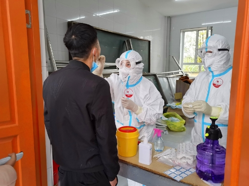 分到黑山鎮(zhèn)核酸采集的21名隊員,則由張艷護(hù)士長帶隊,當(dāng)?shù)匾褯]有20人以上接待能力的賓館,支援隊伍在鎮(zhèn)衛(wèi)生院的病房臨時休整4個小時后,集體出發(fā)到黑山鎮(zhèn)下設(shè)的50個村屯進(jìn)行核酸采集工作。