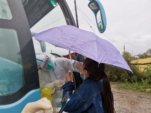 省醫(yī)院南崗院區(qū)中心手術(shù)室護(hù)士趙明裕,中秋節(jié)當(dāng)天下午正在家中給八歲的大女兒過生日,接到通知需要支援巴彥縣核酸采集,親了親身邊的大女兒和四歲的小女兒,立即驅(qū)車前往醫(yī)院。到達(dá)巴彥后,趙明裕被分到后山鄉(xiāng),三人小組同組另兩位隊員都是年過40歲的大姐,已經(jīng)是預(yù)備黨員的趙明裕想想自己年輕一定要多干些,主動請纓承擔(dān)了更多的工作。當(dāng)天,三人共完成了五個村屯近600人的采集,外面陰雨綿綿,氣溫驟降,手消涂在手套上,全手掌冰涼的感覺讓趙明裕本就著裝不多的身體愈發(fā)冰冷,但想到臨行前醫(yī)院同事一次次的叮嚀與囑托,她心中堅信,抗疫必勝。同時當(dāng)?shù)卮迕竦臒崆橐沧屭w明裕的心里暖暖的,后山鄉(xiāng)政府的工作人員和人民群眾都非常積極的配合,尤其是老人和小孩,并沒有由于天氣陰雨綿綿的原因而不配合,都在鄉(xiāng)領(lǐng)導(dǎo)的指揮下,井然有序的配合著。