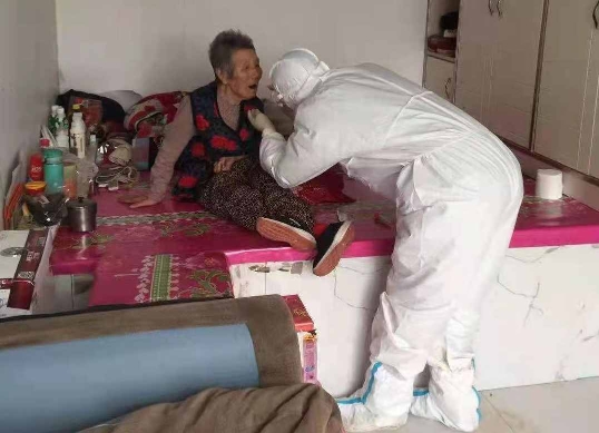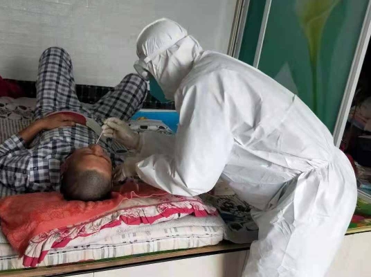 巴彥縣核酸采集現(xiàn)場還活躍著省醫(yī)院健康管理中心疾病康復(fù)部工作人員的身影,護(hù)士長李曉莉率先垂范,發(fā)揮黨員先鋒模范作用,帶隊“出征”;隊員徐賢紅克服低血鉀、全身無力等困難,積極參戰(zhàn);隊員林虹則空腹血糖達(dá)10mmol/L,帶著胰島素請求“參戰(zhàn)”。三人早晨7點(diǎn)開始核酸采集工作,深入到各個鄉(xiāng)鎮(zhèn)村屯,更將核酸采集工作延伸到老鄉(xiāng)家中,為臥床及行動不便的人進(jìn)行核酸采集工作,中飯和晚飯都是快速的吃一口盒飯或者泡面就地解決,然后又迅速投入到工作中。據(jù)了解,疾病康復(fù)部人均年齡都在50歲左右,此次抗疫所有的同事都克服自身重重困難,為完成使命,勇往直前,盡顯龍醫(yī)人的本色。