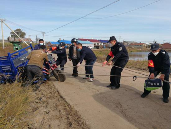 巴彥縣出現(xiàn)疫情后,哈爾濱市公安局航運(yùn)分局副局長井立軍帶領(lǐng)41名來自航運(yùn)分局、地鐵分局、禁毒支隊的戰(zhàn)友們,在巴彥農(nóng)村疫情災(zāi)區(qū)走鄉(xiāng)鎮(zhèn)進(jìn)村屯、查卡點看秋收,用頑強(qiáng)的意志、過硬的膽識,漂亮地打贏了一場巴彥農(nóng)村疫情防控阻擊戰(zhàn)。截至目前,哈爾濱市公安局駐巴彥農(nóng)村防疫工作組共協(xié)助維護(hù)核酸檢測點秩序3028處、檢查村屯卡點2015處、整改存在管理問題村屯卡點103處、整改存在安全隱患居家隔離點437戶,勸阻私自出門秋收等人員862人,監(jiān)督處置有害垃圾、病死牲畜等事件33起,為全面阻斷巴彥農(nóng)村疫情蔓延奠定了堅實基礎(chǔ)。