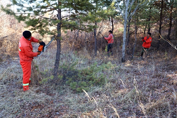 鑒于此,阿木爾林業(yè)局防火辦黨總支以“聚活力、樹形象、添光彩”為主題,結(jié)合“我為職工群眾辦實事”活動,組成黨員突擊隊帶領(lǐng)專業(yè)撲火隊員,拿起割灌機(jī)、手鋸等工具,當(dāng)起“理發(fā)師”“美容師”,清除路兩側(cè)的雜草,清理楊樹、柳樹等枝丫雜木,修剪落葉松、魚鱗松、樟子松的樹枝,再撿拾干凈、裝車運(yùn)走。