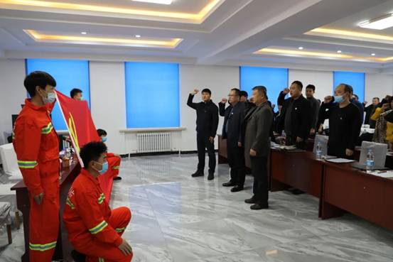 開班式上,全體黨員面對(duì)黨旗莊嚴(yán)宣誓,重溫入黨誓詞。