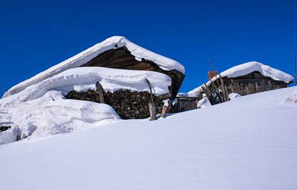 這里的降雪期長達(dá)半年,每年累積降雪厚度達(dá)2米,獨特的小氣候造就了隨物賦形的雪檐,千姿百態(tài)的雪簾,變化多端的雪蘑菇,只有到了這里,才能領(lǐng)略到山舞銀蛇,原馳蠟象,欲與天公試比高的冰雪奇觀。積雪在風(fēng)力的作用下其狀好似奔馬、臥兔、神龜、巨蘑……千姿百態(tài),仿佛是天上的朵朵白云飄落。 雪村人在自家掛起大紅燈籠,潔白如玉的白雪在大紅燈籠的映襯下,溫柔喜慶,幻化無窮。