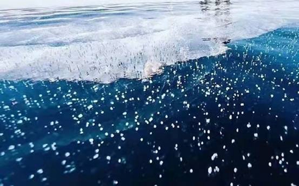 “冰泡”是由湖底植物釋放出的沼氣(甲烷)在上升過程中,因極寒氣溫導(dǎo)致冰封速度過快,被“鎖”在冰層之中而形成。目前,全世界僅有3個著名的冰泡湖,北極漠河冰泡湖是中國最北唯一的“冰泡奇觀”。觀音山“冰泡”晶瑩剔透、造型奇特、惟妙惟肖,有的形似“飛碟”一飛沖天,有的形似“珊瑚”美輪美奐,有的形似“觀音”端坐蓮臺。形態(tài)各異的“冰泡”形成一幅幅精美的冰雪藝術(shù)畫卷,成為漠河冬季最火爆的網(wǎng)紅打卡地。