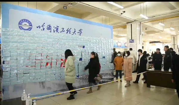 雖然疫情期間,學(xué)校處于封閉狀態(tài),但是哈工程的師生們用自己的方式為抗疫助力。在哈工程飲食中心的展板上以“程心程毅,抗疫有我”為主題,舉辦了一場(chǎng)千人取口罩的活動(dòng),學(xué)生們有序地保持間距,當(dāng)口罩全部取下的時(shí)候,“哈爾濱加油”幾個(gè)字慢慢呈現(xiàn),口罩的背面還有飲食中心準(zhǔn)備的小驚喜,提供各種兌換券,現(xiàn)場(chǎng)的師生被展板上暖心鼓勵(lì)的話語和獨(dú)特的方式所感動(dòng)。