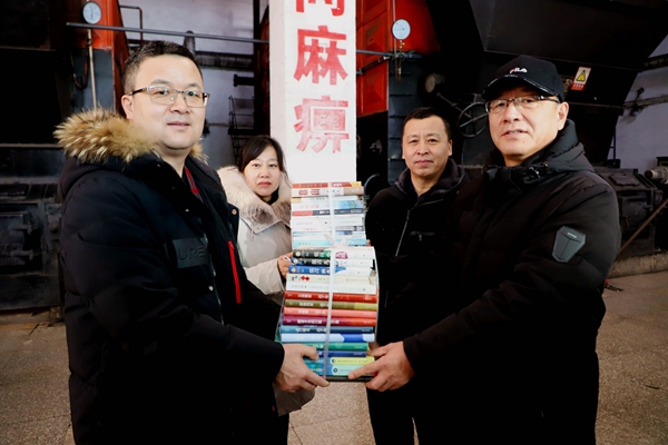 阿木爾林業(yè)局黨委委員、宣傳部部長(zhǎng)高樹(shù)源(左一)為物業(yè)公司送書(shū)籍的精彩瞬間(王力 攝)