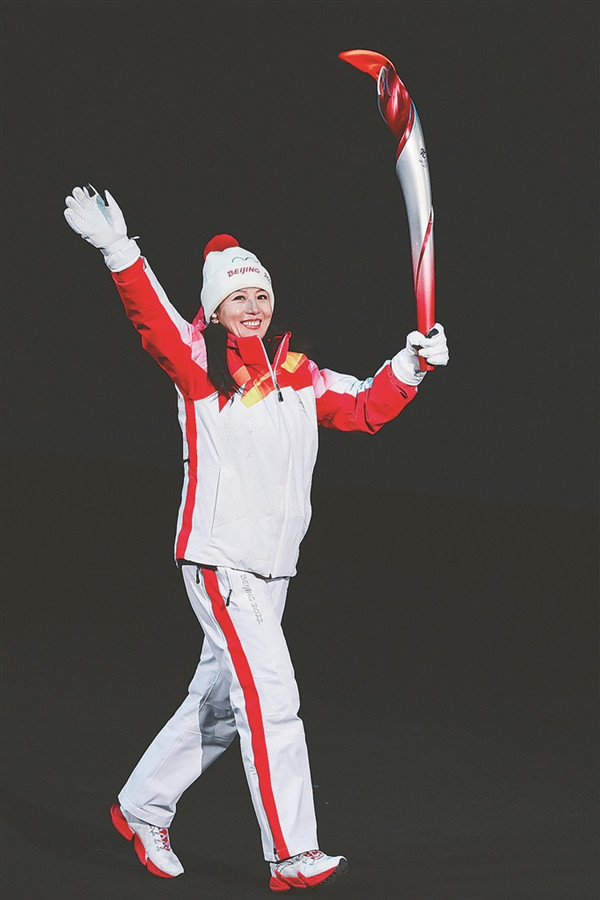 楊揚(yáng)在開幕式上傳遞火炬。 新華社記者 薛宇舸攝