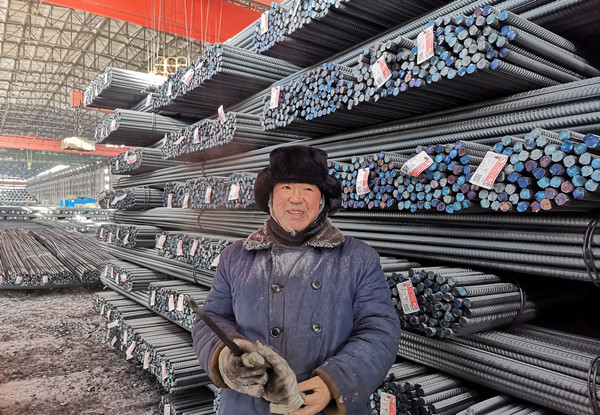 在鋼材成口庫,一位身穿工裝大棉襖、頭戴棉帽,捂得嚴(yán)嚴(yán)實實,臉色微紅的,帽沿掛滿了霜的工人十分引人注目。他叫朱世軍,是軋鋼廠發(fā)運作業(yè)區(qū)丙班的一名普通司索操作員,初一正是白班,主要負(fù)責(zé)鋼材裝運掛鉤和為火車車皮用鐵線鎖車門工作,一但發(fā)運繁忙時,無論白班還是夜班都得在室外作業(yè)裝車,企業(yè)鋼材就靠他們配合裝上火車發(fā)往市場的?!敖裉斓冒l(fā)運鋼材110車左右,每天上班,在成品庫得上上下下,得走好幾里地,今天就挺冷啊,最低零下26度,冷風(fēng)吹的嘴都木了,既使戴著棉手套,手也都凍僵了,但是,每天一想到通過我的努力,把建龍西鋼鋼材發(fā)往全國各地,為建龍西鋼美好企業(yè)建設(shè)做貢獻(xiàn),我雖然冷點但心里熱乎乎的,真心感到驕傲和自豪。