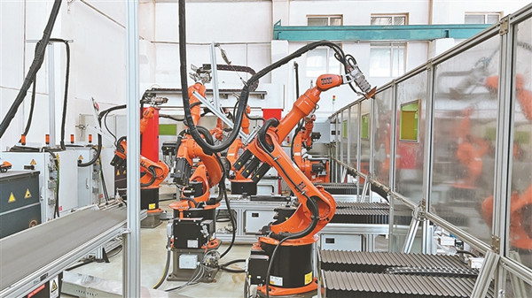 齊齊哈爾黑龍國(guó)際冰雪裝備有限公司生產(chǎn)車(chē)間,焊接機(jī)器人大幅度提高生產(chǎn)效率。