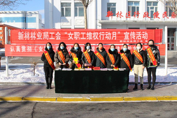 新林林業(yè)局工會女職工維權(quán)志愿者設(shè)置宣傳臺接受女職工維權(quán)咨詢(冀威威 攝)