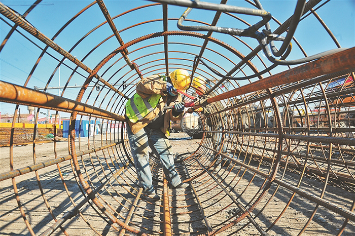 焊花飛濺、工程車來回穿梭……走進省級重點項目——北門街高架橋工程建設(shè)現(xiàn)場,施工人員有的綁鋼筋,有的輔助機器打樁,鉆頭飛轉(zhuǎn),施工熱火朝天。