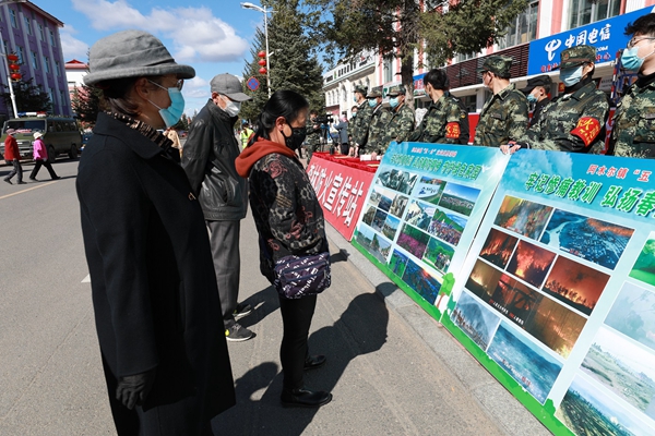 林業(yè)局還在人員密集場(chǎng)所設(shè)立宣傳臺(tái)、宣傳圖版,懸掛宣傳條幅,設(shè)立音箱循環(huán)播放“五·六”大火發(fā)生過程及損失情況。并向過往行人發(fā)放宣傳單,講解森林防火的重要意義,普及森林防火知識(shí)。同時(shí),利用傳統(tǒng)媒體播放“五·六”火災(zāi)電教片,全方位、多角度、深層次地開展反思活動(dòng),掀起森林防火宣傳工作新高潮。