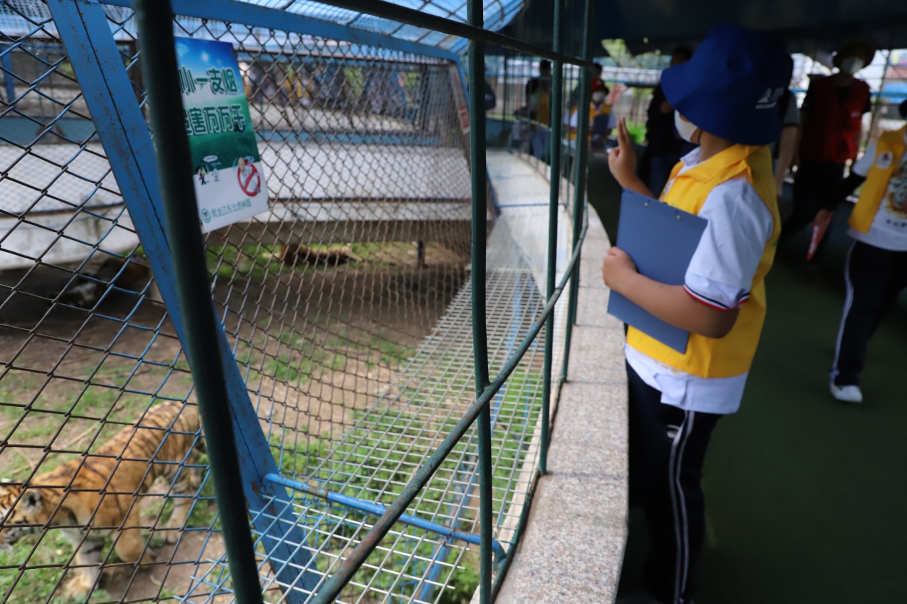 在東北虎林園工作人員的帶領(lǐng)下,小朋友們穿著統(tǒng)一的黃馬甲,手持研學(xué)游活動記錄單,充滿期待地走進(jìn)東北虎林園,近距離觀察動物們的外貌特征、動作特點,細(xì)致聆聽工作人員的講解,認(rèn)真記錄自己所看到的每一個細(xì)節(jié)、聽到的每一個知識,還有愛畫畫的小朋友畫下了自己親眼所見的老虎憨態(tài)可掬的樣子。