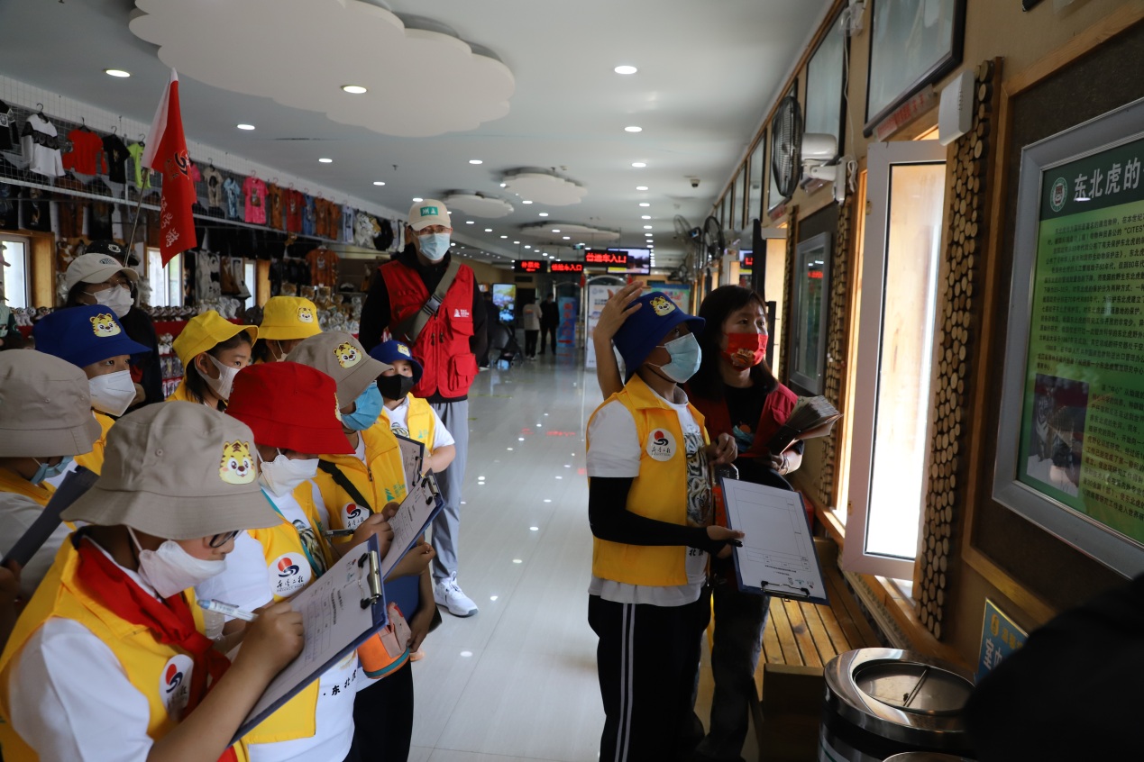 工作人員沿途講解著東北虎遷地保護的重要作用、東北虎科普知識、東北虎文化等,還一邊講解一邊跟小朋友們進(jìn)行互動,大家踴躍舉起小手,搶著回答問題,爭先恐后展示自己學(xué)到的知識,答對的小朋友得到了東北虎林園工作人員獎勵的小禮物,臉上露出了快樂的笑容。