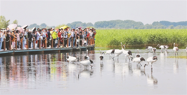 15日,第二個“鄉(xiāng)約扎龍·情滿鶴城”——“扎龍齊齊哈爾市民日”全面啟動。當(dāng)日天藍水碧,徐徐微風(fēng)拂過,眾多游客來到國際重要濕地之一的扎龍濕地感受濕地風(fēng)光的壯闊之美,欣賞鶴舞云翔的自然之美。馬麗娟 宋燕軍 黑龍江日報全媒體記者 姚建平攝