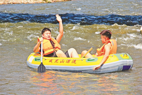 進入暑期,威虎山水上樂園迎來了狂歡季,徜徉在清爽的造浪池內(nèi),陽光與森林山泉做伴,感受夏日的獨特魅力。在水上樂園嬉戲過后,到二道河漂流是游客的不二選擇。漂流河段全長8公里,河道急緩適當(dāng),兩岸自然風(fēng)光渾然天成。