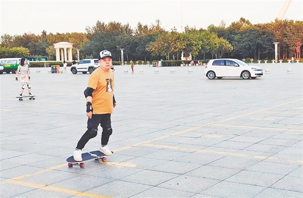 桀驁看起來40歲上下,但其實已經(jīng)47歲。看架勢他足夠嫻熟,但他告訴記者自己才滑了一個多月?!拔以韧媪藥啄陠伟寤?,刷抖音??磫伟寤┑囊曨l,今年初后臺總給我推送陸沖的內容,看著看著喜歡上了,就買了板,和大家一起玩?!?/span>