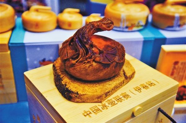 此次,美江木藝有限責(zé)任公司共展出了100余件產(chǎn)品,其中,最引人注目的瑞虎冰壺,由美江木藝公司為2022中國(guó)冰壺聯(lián)賽(伊春站)主題創(chuàng)作,最大直徑1.8米,總高度1.6米。主體壺身采用2022個(gè)小興安嶺山核桃做原料,壺蓋部分采用小興安嶺珍貴樹種紅松。作品構(gòu)思巧妙、用材獨(dú)特,既契合本次冰壺聯(lián)賽內(nèi)容,又充分體現(xiàn)了林都伊春、冰壺之鄉(xiāng)的地域特征。構(gòu)成壺身的2022個(gè)山核桃,寓意著2022年河山錦繡的小興安嶺,構(gòu)成壺蓋的興安紅松,蘊(yùn)含著華夏文明“鴻運(yùn)當(dāng)頭”的美好期許。此藝術(shù)品既體現(xiàn)伊春的森林文化藝術(shù)與競(jìng)技體育相融合的發(fā)展理念,也展現(xiàn)了伊春的冰雪經(jīng)濟(jì)和木藝創(chuàng)意設(shè)計(jì)產(chǎn)業(yè)的發(fā)展成果。