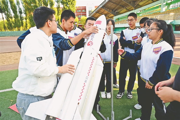 發(fā)射火箭模型。本報(bào)記者 荊天旭攝