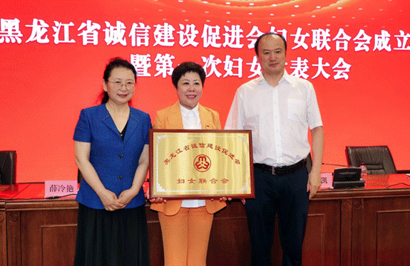 省直機關(guān)工委副書記、全省性社會組織黨委書記徐凱,省婦女聯(lián)合會黨組成員、省政府婦兒工委辦主任姜秀麗為黑龍江省誠信建設(shè)促進會婦女聯(lián)合會頒發(fā)牌匾。