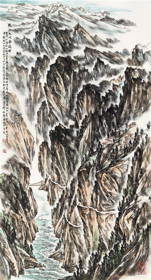 舒建新 怒江大峽谷遠(yuǎn)眺 234cm×123cm 國(guó)畫