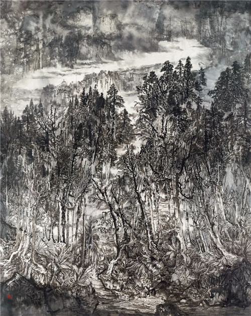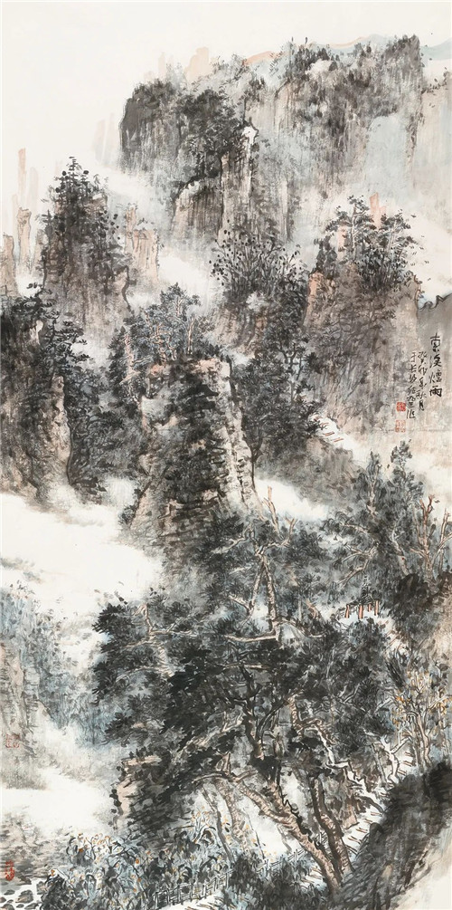 田紹登 索溪煙雨 247cm×124cm 國(guó)畫