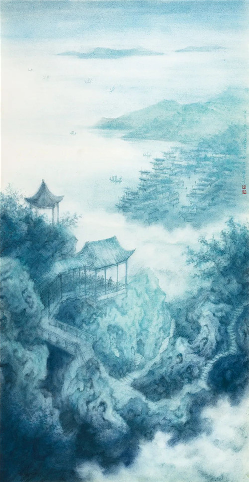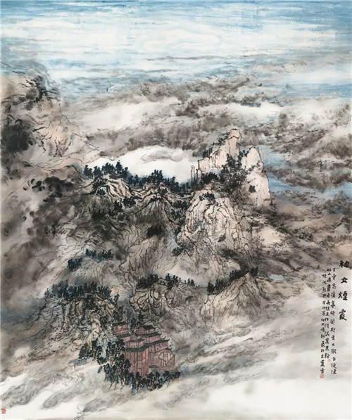 薛磊 青城嵐煙 234cm×123cm 國(guó)畫