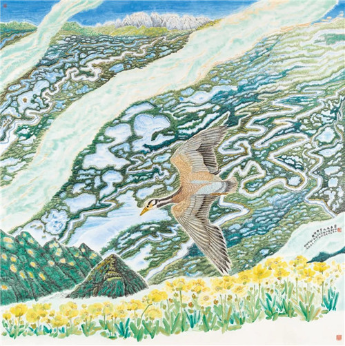 徐冬青 當(dāng)曲風(fēng)光 花開源頭 200cm×200cm 國(guó)畫
