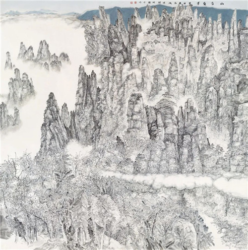 李昀蹊 李玥都 山巒疊秀 200cm×200cm 國(guó)畫