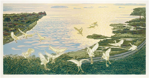 張國(guó)琳 湯曉云 巢湖 90cm×180cm 版畫