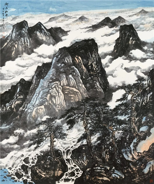 譚長(zhǎng)德 衡山松云 231cm×192cm 國(guó)畫
