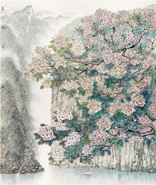蔣才 瞿塘峽口滿山花 240cm×200cm 國(guó)畫