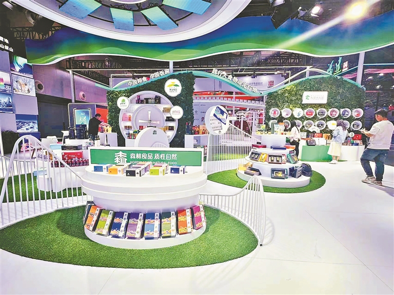 在黑龍江展館內(nèi),設(shè)置了省級區(qū)域公用品牌黑土優(yōu)品、九珍十八品展區(qū)及龍江森工集團(tuán)森林食品展區(qū),琳瑯滿目的綠色食品彰顯了龍江的地大物博以及做好祖國糧食安全“壓艙石”、打造踐行大食物觀先行地的底氣與實(shí)力。