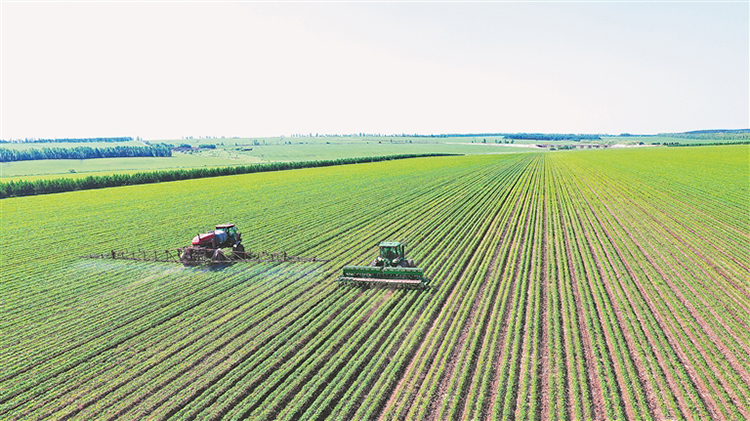 近日,在尖山農場第一管理區(qū)北14號大豆地,大馬力機車、大型自走式噴藥機馳騁沃野、并肩作戰(zhàn),正在幫助耕地“疏松筋骨”和噴施葉面肥、除草劑,通過高標準夏管讓大豆在生長過程中不缺溫度、不缺營養(yǎng)。