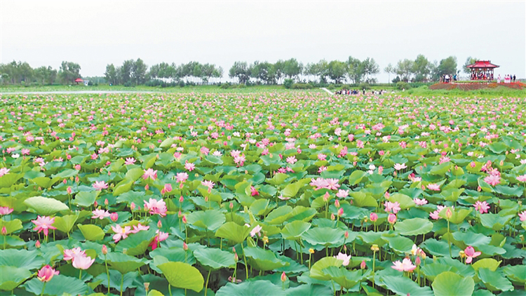 走進位于北林區(qū)雙河鎮(zhèn)西南村的正大稻田公園,荷花映日,稻始抽穗,田間不時有陣陣蛙鳴。藍天白云之下,綠浪翻滾,游人漫步其間交談著觀光感受,一幅寧靜安適的鄉(xiāng)村田園畫卷徐徐展開?!霸陂e暇的時候來到這里散散步,感受戶外樂趣和田園風景,感覺身心都很放松、很快樂。”游客趙忠塔說。