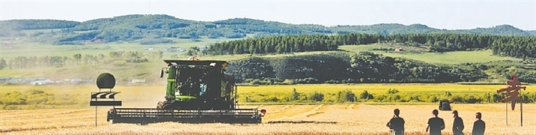 近日,在北大荒集團查哈陽農場有限公司金星管理區(qū)的小麥地塊,一臺大型收獲機車穿梭在金黃的麥田中,又是一年小麥收獲時。