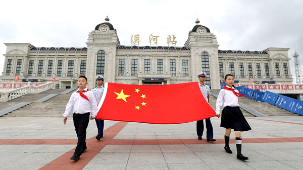 黑龍江經(jīng)濟(jì)網(wǎng)訊(王丹陽)8月16日上午,由全國少工委聯(lián)合中國載人航天工程新聞宣傳辦公室舉辦的“紅領(lǐng)巾愛祖國——我心中的五星紅旗”國旗傳遞活動(黑龍江漠河站)在漠河市北極鎮(zhèn)中心小學(xué)舉行。來自全省各地的少先隊(duì)員代表、輔導(dǎo)員代表、漠河市黨政軍警民代表、西部計(jì)劃志愿者共計(jì)100余人參加活動。